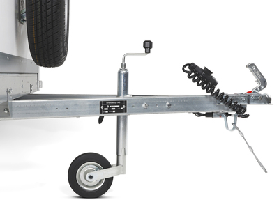 Ruotino di sostegno incluso come dotazione di serie per una facile movimentazione del rimorchio quando non è collegato all'auto.