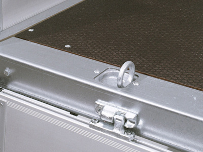 Internal integrated foldable lashing eyes, inserted in the steel frame. Max 400 kg