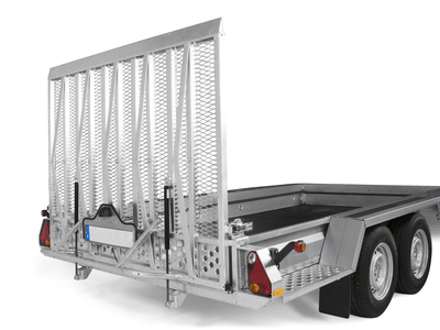 Parafanghi rialzabili e gradini supplementari per facilitare l'accesso alla macchina caricata sul rimorchio