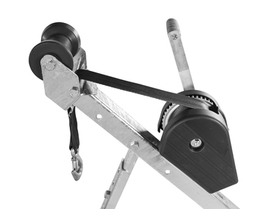 Gli argani sono dotati di carter protettivo e sono fissati con supporti facilmente regolabili.